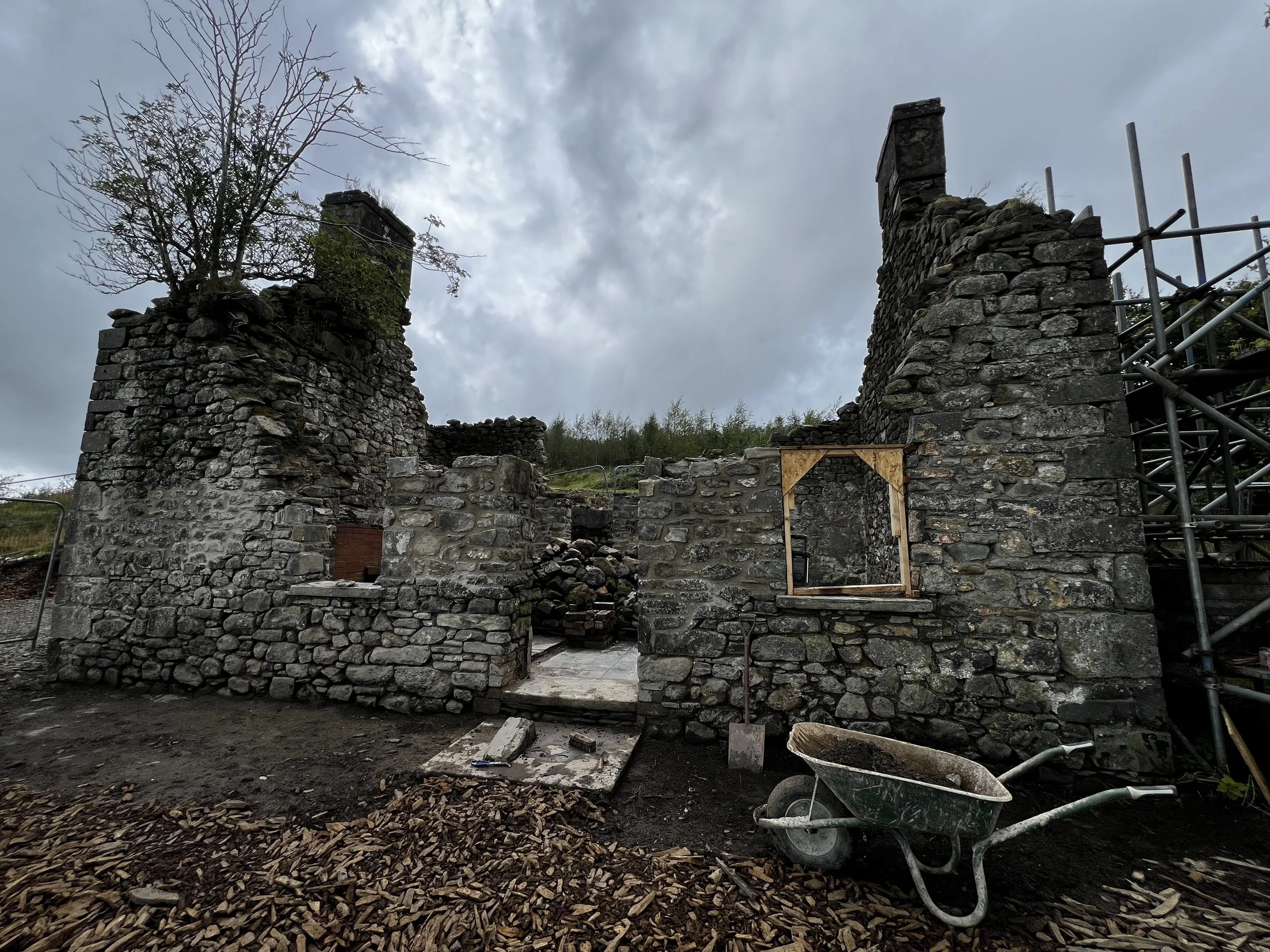 Ffos-y-Fign is being skillfully restored entirely by hand, stone-by-stone, using traditional techniques and materials. From the outside, it will look more or less just as it did in the 1700s. From the inside, however, it will be light, airy, warm and cozy. The whole building will be open plan, with a sleeping platform accessed by a spiral stone staircase and across a Juliet balcony. This sleeping platform will look back onto a double height living area and a huge open fireplace.